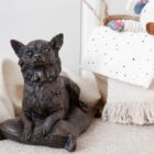 Cold cast resin bronze finish – Breed Urn for internment of ashes (indoor only). Size 31cm x 25cm x 20.5cm