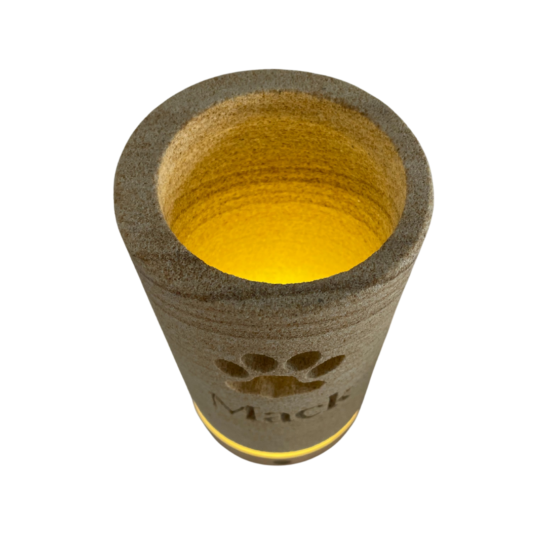 Each lantern is carved from a single piece of Australian sandstone. Its natural colours and markings are part of the stone itself, making every piece truly unique — just like the loved one it represents.