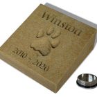 Water Pet Cremation Brisbane offers: Natural fine grain sandstone tile 20cm x 20cm x 4cm (front)/8cm (back) with your loved one’s personalised pawprint on front with name and date/words. This tile can hold a token of your loved one’s ashes.