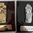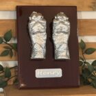 Mounted Single and Double Paw Castings – Your pet’s paw casting/s (You’re pet’s nose can be added to this selection) is carefully displayed on a wooden base – choose from either Black or Woodgrain (Mahogany). The base may be hung on a wall or free-standing.