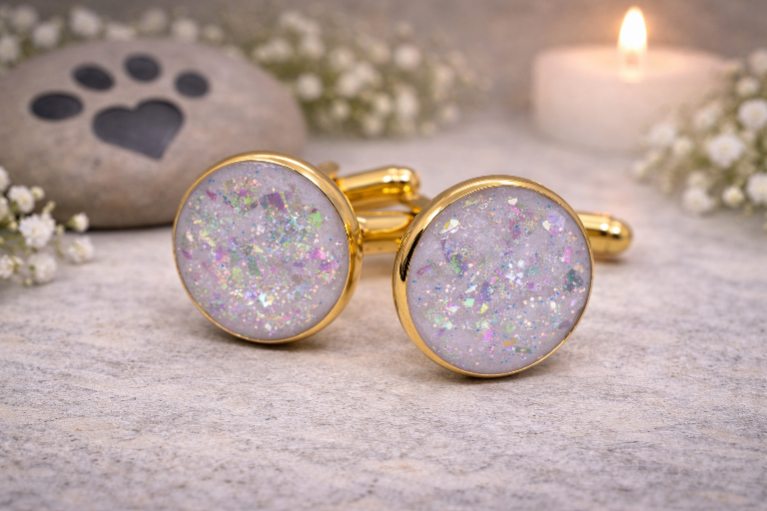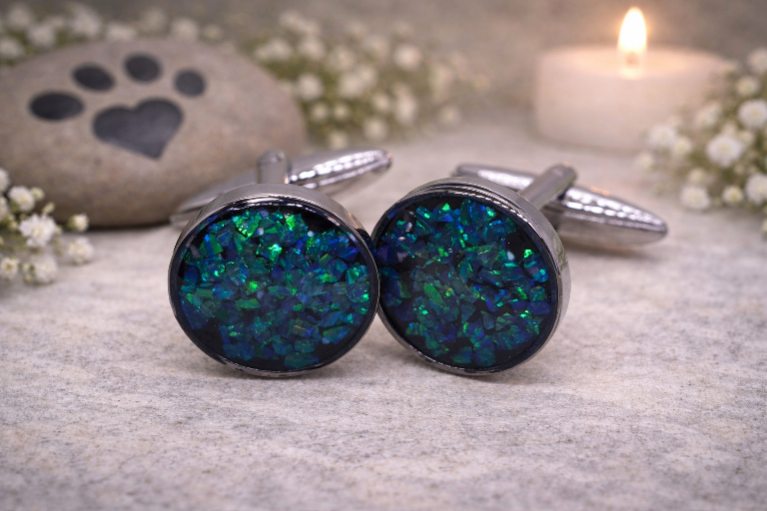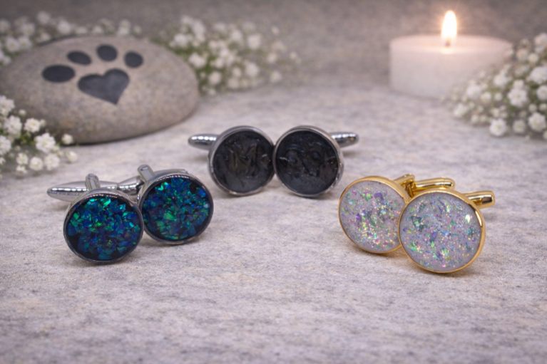 We commemorate the life of your loved one by placing a portion of their ashes into a unique keepsake to cherish in the form of a pair of cufflinks.