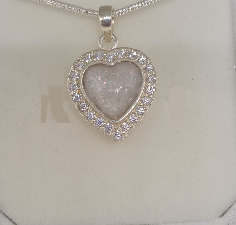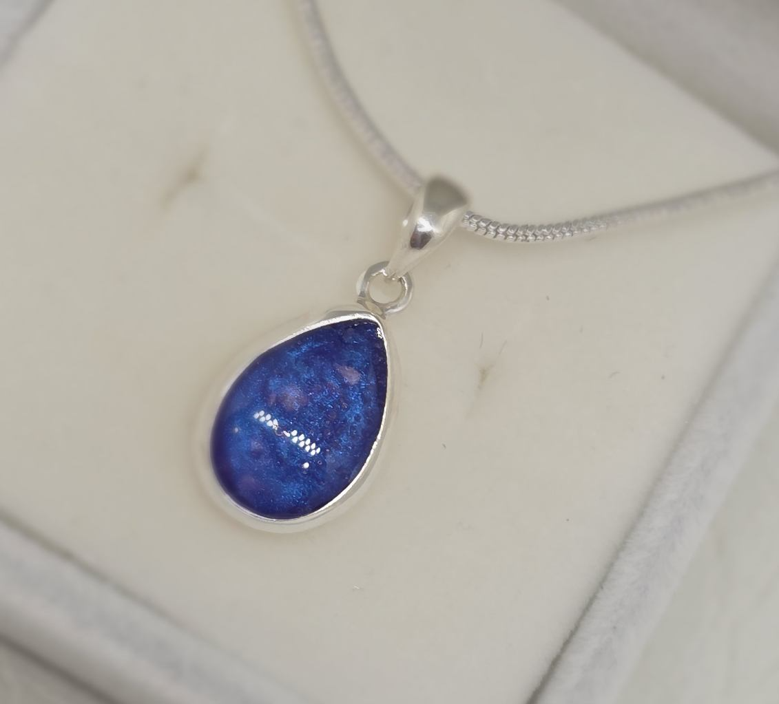 We transform the ashes of your loved one into a unique keepsake to cherish in the form of a Stunning Solid Sterling Silver Pendant with your chosen colour with your loved one’s ashes.