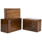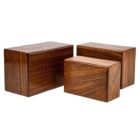 We offer a beautiful collection of timber cremation urns that are handcrafted from hardwood. Each piece of timber will have a unique coloring thanks to the well-defined grain of the wood, which can be brought to a fine finish by hand waxing. The wood is described as golden brown to deep brown in colour, with darker streaks that give the wood an attractive appearance. The wood is hard with a uniform and medium course texture. It has a good natural resistance to decay and is considered to be a popular carving and engraving wood in India. This is a lovely timber and does not warp or split like many other timber cremation urns out there. It is extremely durable and is one of the timbers least susceptible to dry-wood termites.