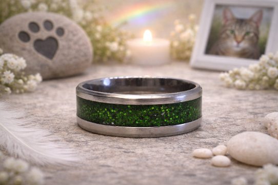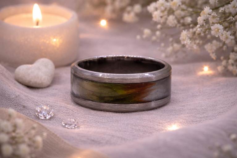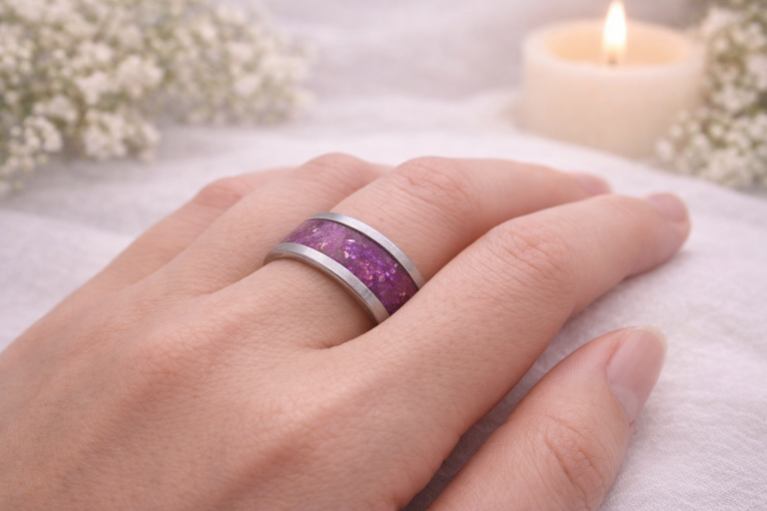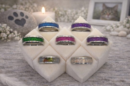 We transform the ashes of your loved one into a unique keepsake to cherish in the form of a unisex stainless-steel ring. Various sizes available – if you determine your ring size by measuring the inside diameter of a current ring that fits.